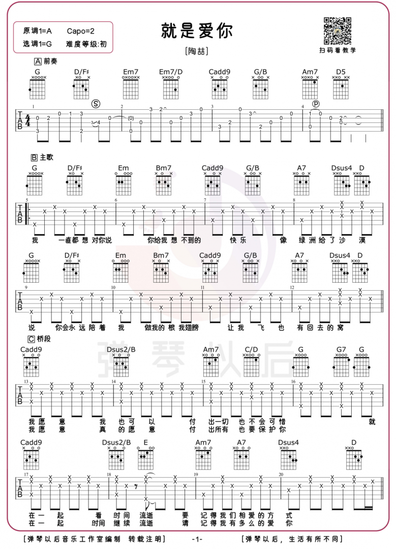 音乐让生活更美好,以上是GuitarPro中文官网为大家免费提供的陶喆《就是爱你》吉他谱,希望对大家能够有所帮助,GuitarPro中文官网会定期推出高质量吉他谱,希望大家关注GuitarPro中文官网!