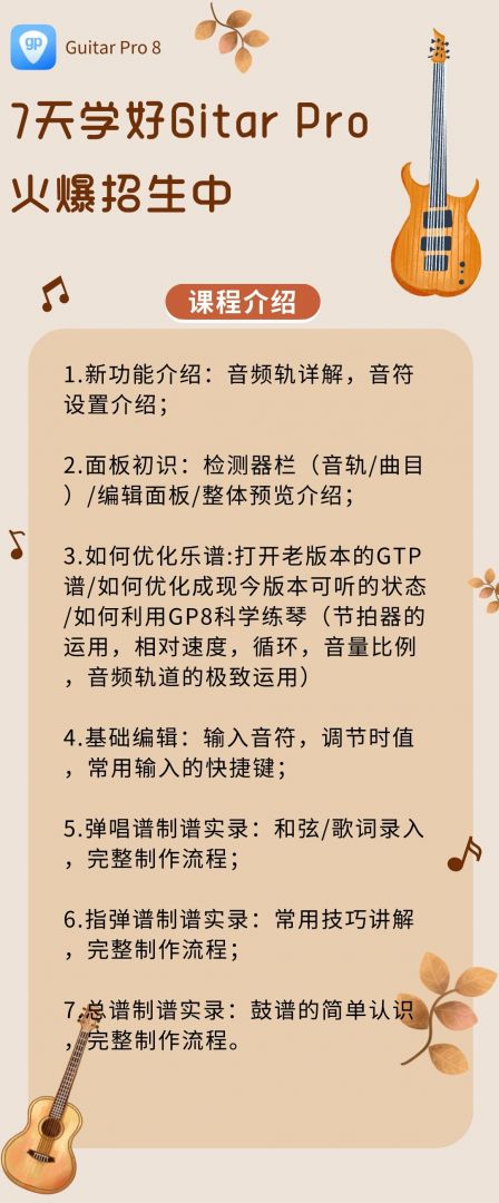 快来报名参加本次7天训练营吧!零基础玩转Guitar Pro自学吉他打谱&扒谱