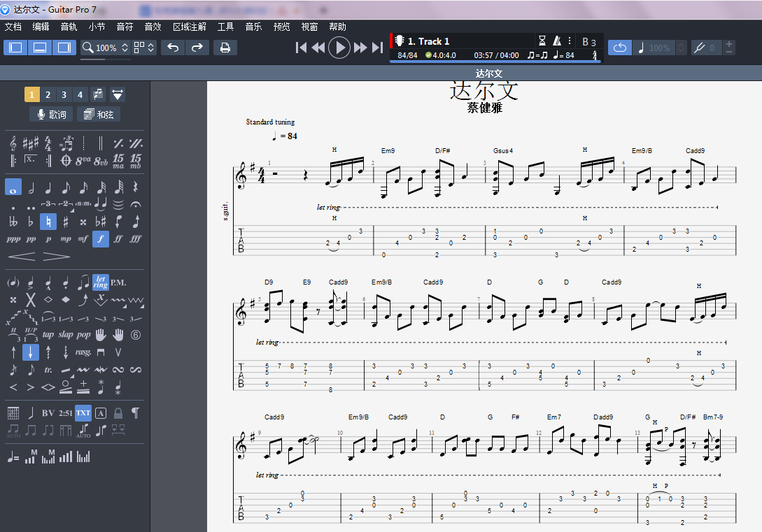 本期文章到此结束,快下载guitar pro7研究一下G调和弦吧。