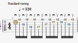 笔者推荐大家在练习乐句的时候,依然是从慢速练起,配合guitar pro使用乐谱上的其他音轨一起练习。