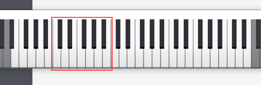 打开“虚拟键盘”后,我们可以看到很熟悉的钢琴键盘。一目了然,钢琴键盘上最突出的特征就是白键和黑键,一共88个。细心的小伙伴会发现,白键和黑键的分布是有规律可循的,就如图3的红框所示,每七个白键和五个黑键为一组,一组就称为一个八度,在键盘上重复的出现,一共七个循环,88个键,并且随着琴键从左到右,音高从低到高。我们日常涵盖的所有“乐音”,比如说乐器发出的声音、电话铃声、计算机和座机的按键音都可以用钢琴键盘上的88个键来弹出来。