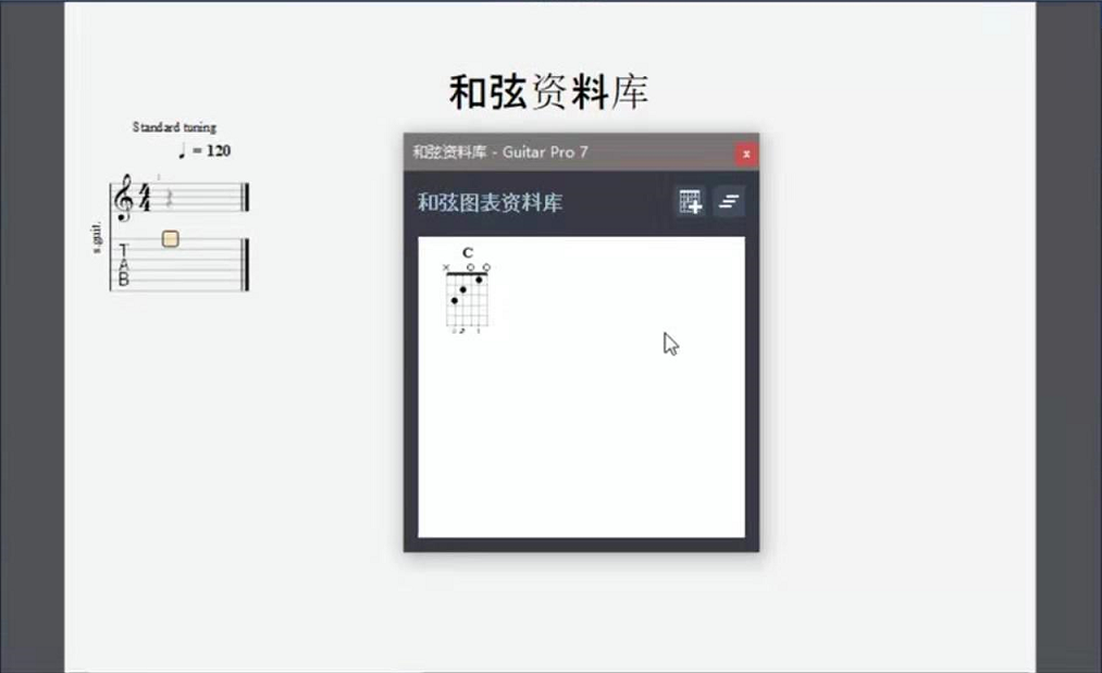 和弦添加完毕后,和弦图表资料库中就会出现该和弦的图像,使用鼠标单击即可将其加进曲谱中。若资料库中的和弦添加出现错误,可以将鼠标移至图像内,点击图中的“X”号将其删除,大家也可以点击右上角的图标(右侧)将资料库清空。