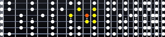 这个音阶训练,需要我们从任意的指板位置上看到该音阶中所邻近的音符。我们不仅需要考虑到附近的下一个音符,还需要意识到周围其它音符的可能性,然后在吉他指板上自由的移动。