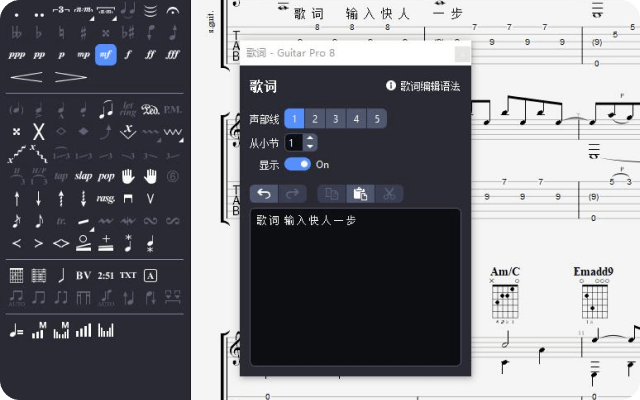 简谱功能的加入使得软件更加贴合国内吉他爱好者的使用习惯,让吉他弹唱谱的制作更加简单和方便。