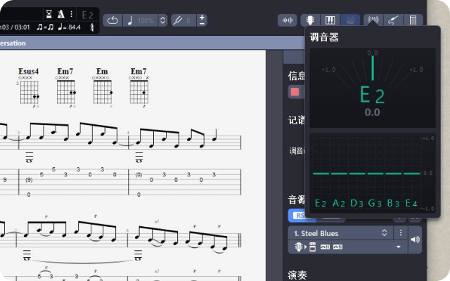 只需直接在五线谱或六线谱上编辑,即可轻松谱写自己的乐章。所有与吉他及其他弦乐器有关的常用音乐符号都可为你所用。