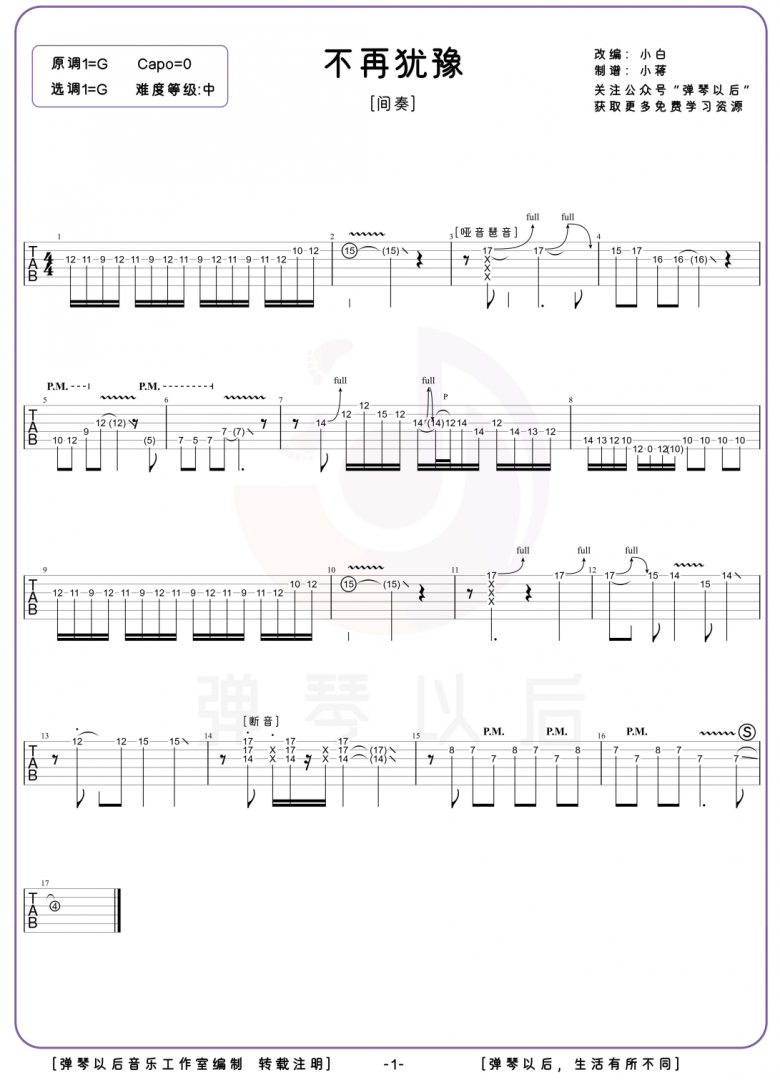 音乐让生活更美好,以上是GuitarPro中文官网为大家免费提供的《不再犹豫》间奏吉他谱,希望对大家能够有所帮助,GuitarPro中文官网会定期推出高质量吉他谱,希望大家关注GuitarPro中文官网!