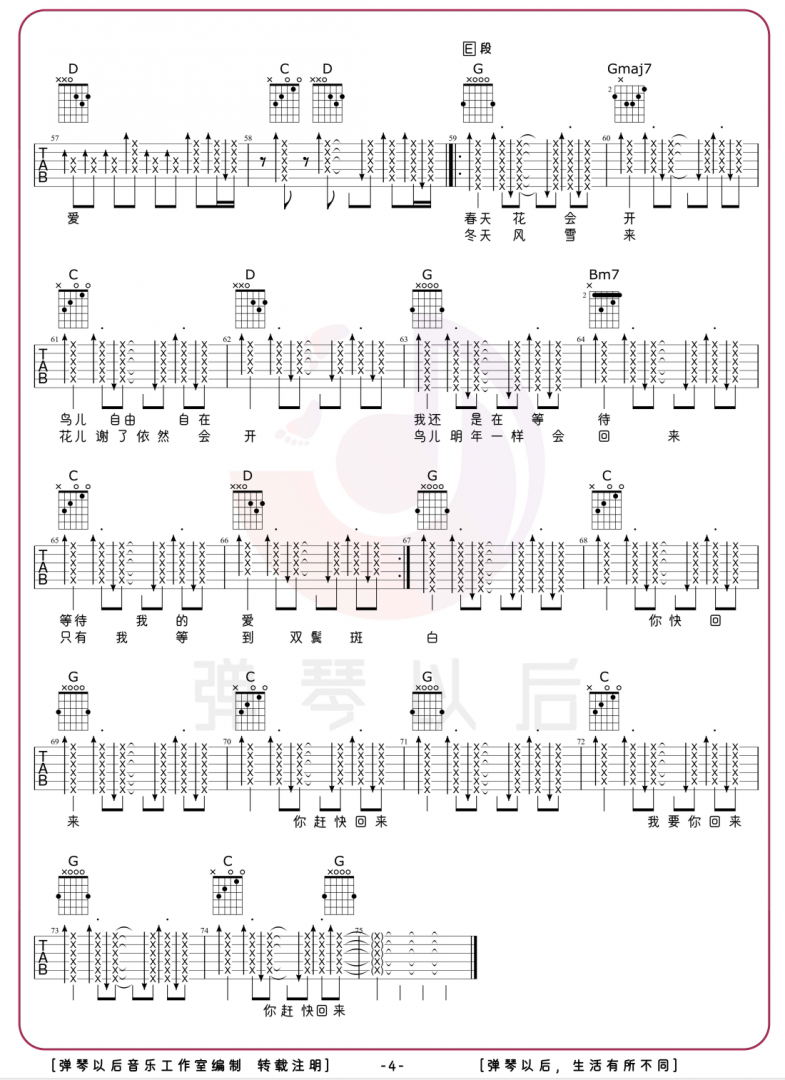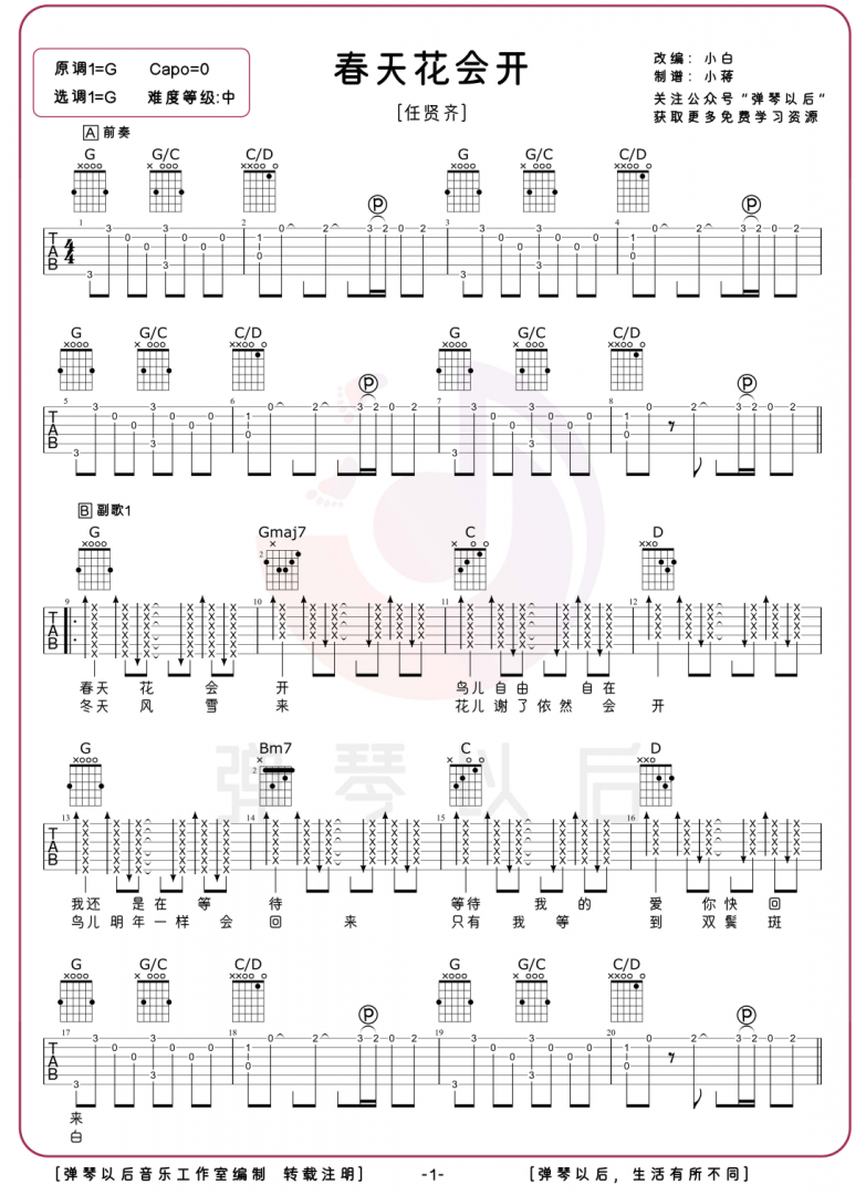 音乐让生活更美好,以上是GuitarPro中文官网为大家免费提供的任贤齐《春天花会开》吉他谱,希望对大家能够有所帮助,GuitarPro中文官网会定期推出高质量吉他谱,希望大家关注GuitarPro中文官网!