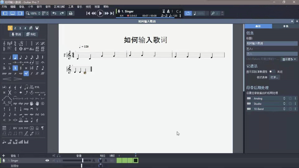 编辑歌词的基础在于是否会打谱,下期我们会介绍如何用Guitar Pro打谱。好了,关于Guitar Pro编辑歌词的具体教程就介绍到这里了。想要了解更多的内容,感兴趣的小伙伴可以关注我们Guitar Pro 中文网站。