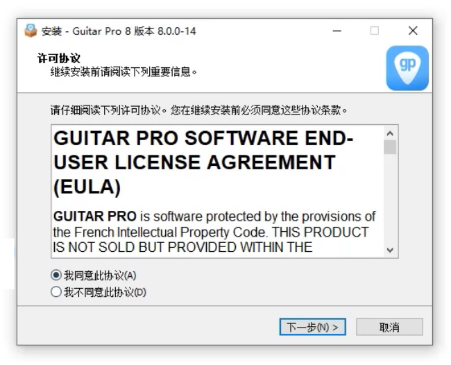 2.双击下载好的Guitar Pro8安装包。