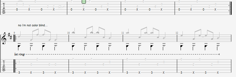 介绍完一个guitar pro的小功能之后,我们回到曲谱之中。