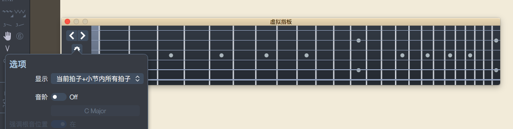 当关闭这个选项时,指板上只显示音的位置,而不显示音名,如下图所示