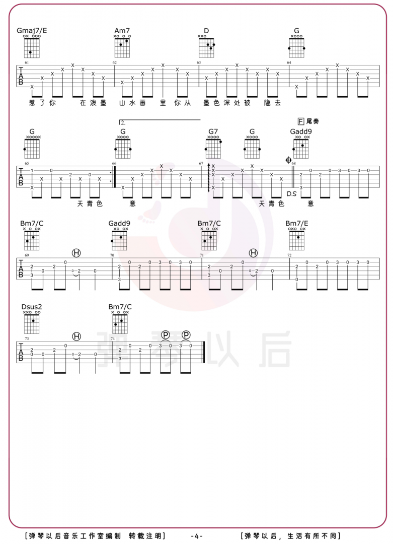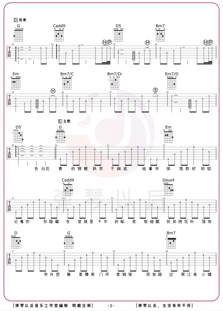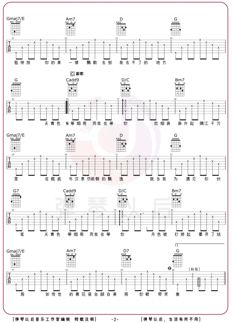 音乐让生活更美好,以上是GuitarPro中文官网为大家免费提供的周杰伦《青花瓷》吉他谱,希望对大家能够有所帮助,GuitarPro中文官网会定期推出高质量吉他谱,希望大家关注GuitarPro中文官网!