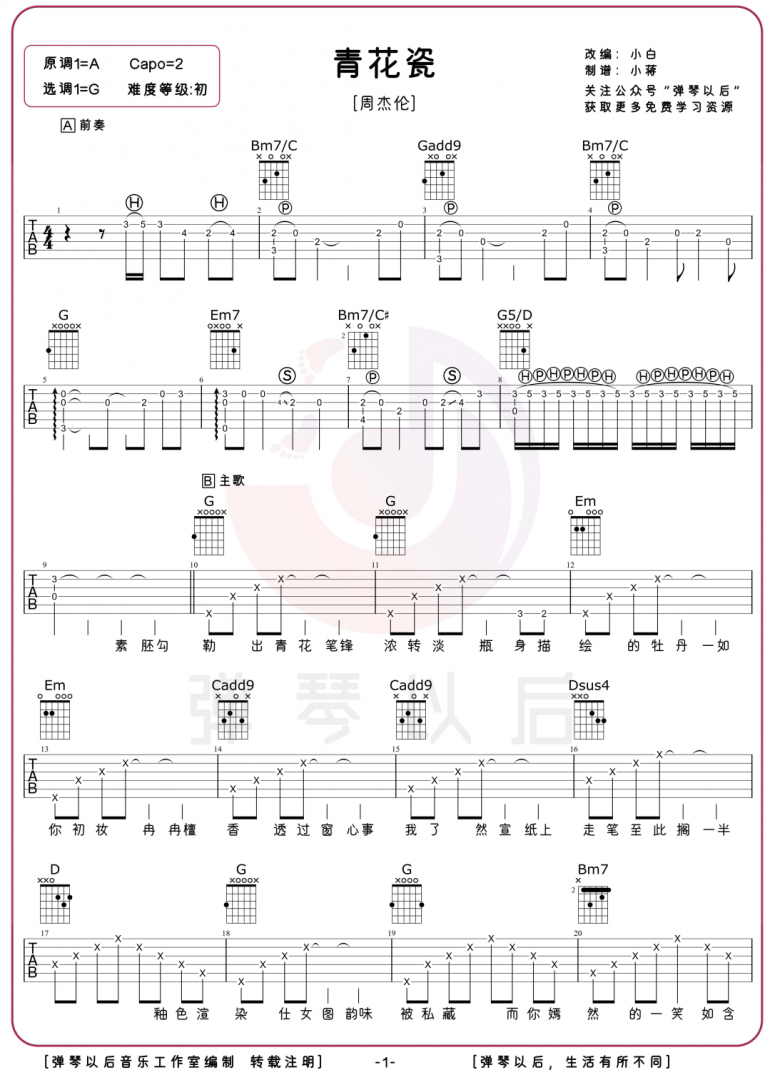 一、《青花瓷》吉他谱