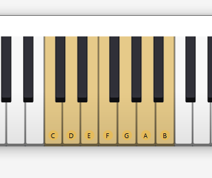 既然有规律可循,这一个八度里的12个键,怎么命名呢?请用鼠标从一个八度里点击所有的白键试试看(图4),可以看到,白键都显示出它们具体的名字,依次分别是CDEFGAB,这七个白键称之为“基本音级”。