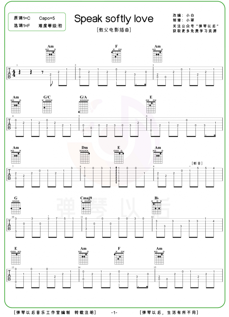 一、《Speal soflty love》吉他谱