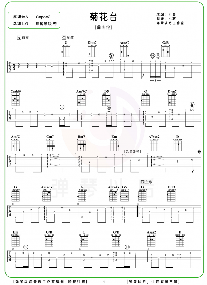 音乐让生活更美好,以上是GuitarPro中文官网为大家免费提供的周杰伦《菊花台》吉他谱,希望对大家能够有所帮助,GuitarPro中文官网会定期推出高质量吉他谱,希望大家关注GuitarPro中文官网!
