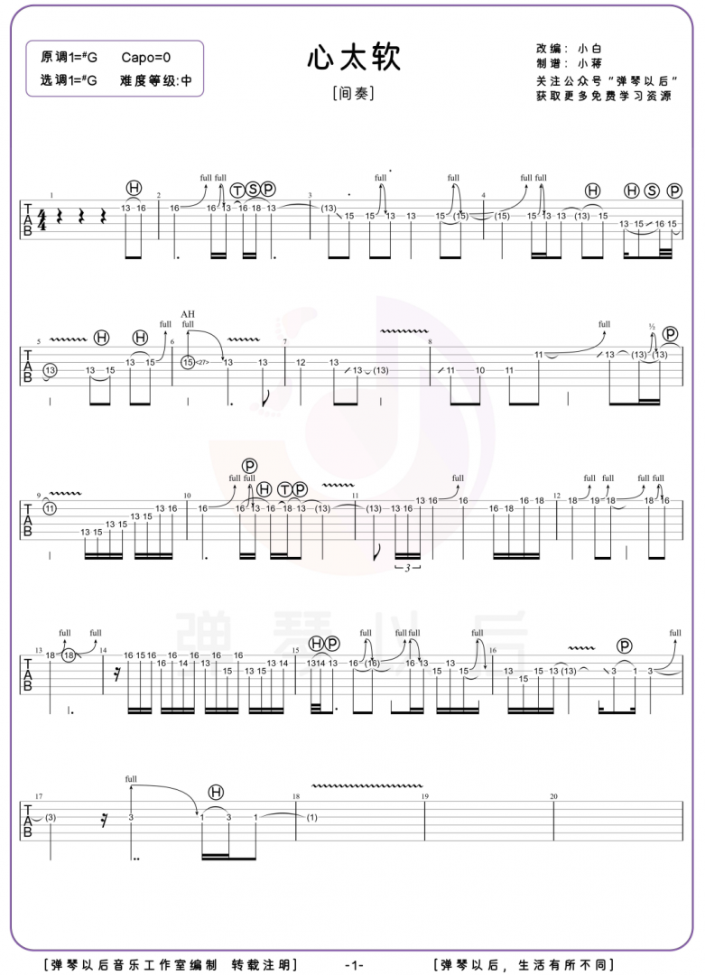 音乐让生活更美好,以上是GuitarPro中文官网为大家免费提供的《心太软》吉他谱,希望对大家能够有所帮助,GuitarPro中文官网会定期推出高质量吉他谱,希望大家关注GuitarPro中文官网!
