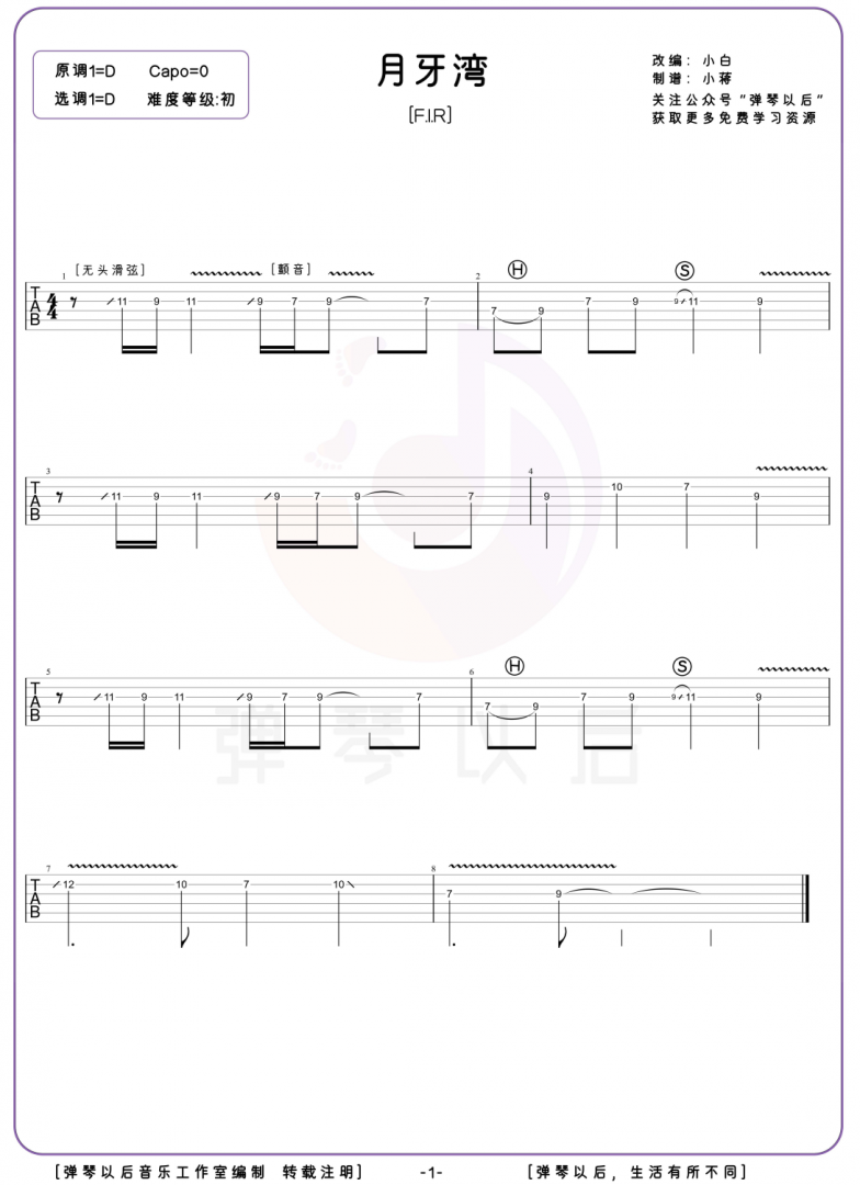 音乐让生活更美好,以上是GuitarPro中文官网为大家免费提供的《月牙湾》吉他谱,希望对大家能够有所帮助,GuitarPro中文官网会定期推出高质量吉他谱,希望大家关注GuitarPro中文官网!